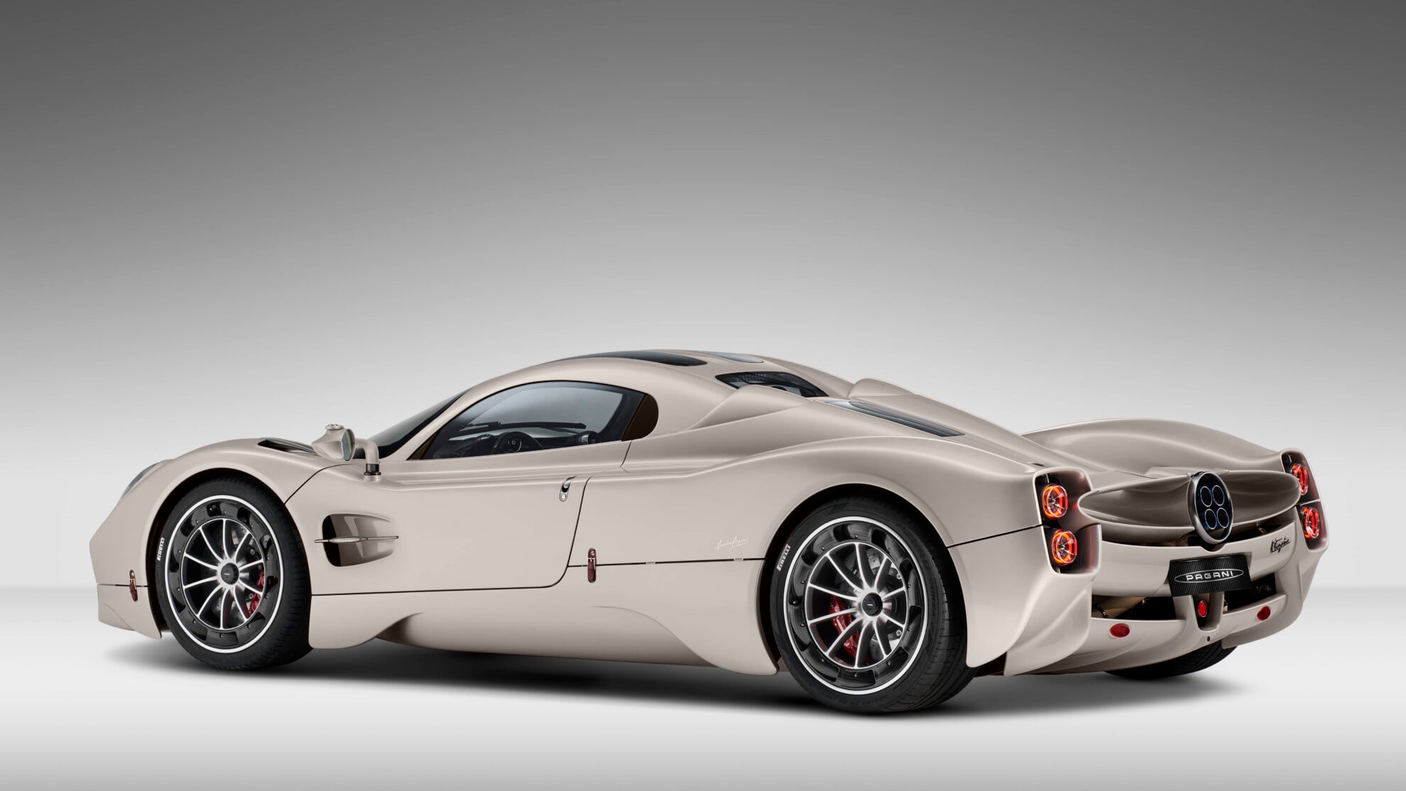 The side mirrors, as if suspended in mid-air, thanks to the airfoil-shaped support are set apart from the body for better aerodynamic penetration, showing the meticulous optimization that was carried out on them in the wind tunnel. The rear lights float at the sides of the rear wings, set into the air extractors. Each part of them, so beautifully crafted, could be displayed in the window of a jeweler's shop.